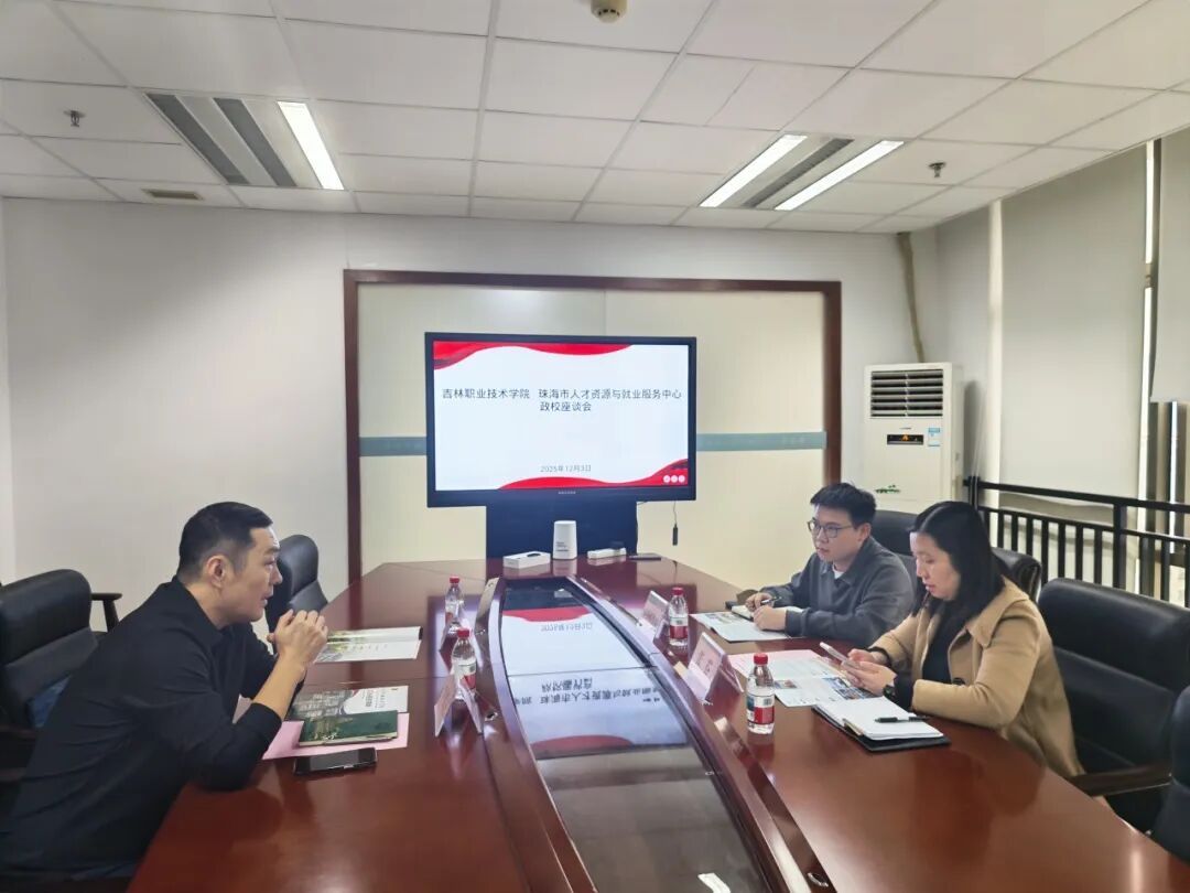 在珠海市,李光星一行走访珠海市人才资源与就业服务中心,与副主席张芬、市场服务部李全书等进行交流。双方围绕毕业生招聘流程、岗位匹配、就业服务等展开讨论,张芬高度认可学校毕业生专业素养与职业品格,期待更多吉职学子扎根珠海、服务地方产业发展。
