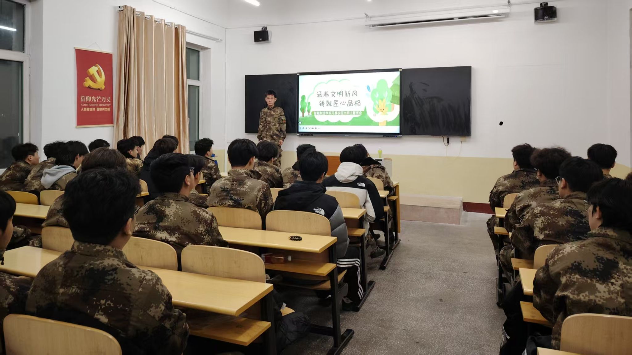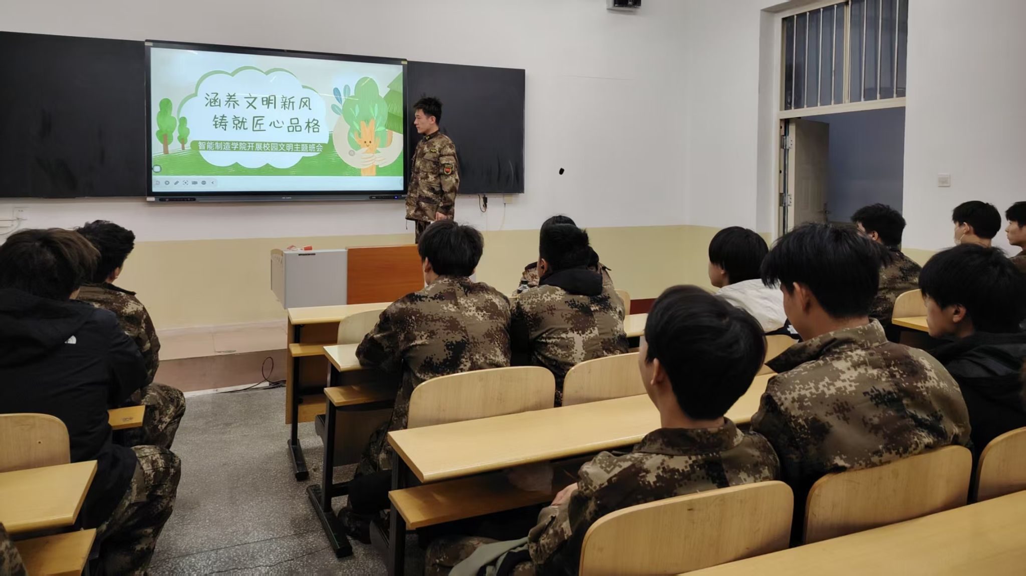 此次校园文明主题班会的开展,进一步夯实了学院思想教育的根基,强化了学生的文明意识与责任担当。未来,智能制造学院将持续深化校园文明建设工作,把文明教育融入人才培养的全过程,以文明新风滋养匠心精神,引领全体学子以良好的精神风貌、规范的行为习惯,在求学路上笃行不怠、向阳成长,为营造和谐文明、积极向上的校园环境贡献青春力量。