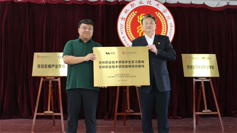 授牌仪式上,吉林职业技术学院纪委书记、学工部部长李贵河代表学校与各企业代表签订了校企合作框架协议;龙井市市委常委、副市长徐之光,东软教育科技集团有限公司职业教育事业部项目经理管玉明,延边州人力资源和社会保障局副局长李铁锡,理想汽车校企合作经理施扬分别为东软数智产业学院、理想智造产业学院揭牌;延边州工业和信息化局四级调研员吴限良,京东物流吉林省地区总经理贺宇,省教育厅驻吉林职业技术学院督导专员、党委书记崔振宇,延边朝鲜族自治州电子商务研究院理事长、西开电商有限公司总经理尹勇勋分别为沿边电商产业学院、京东数字乡村产业学院揭牌。随后,吉林职业技术学院校长柳森向合作企业授牌。
