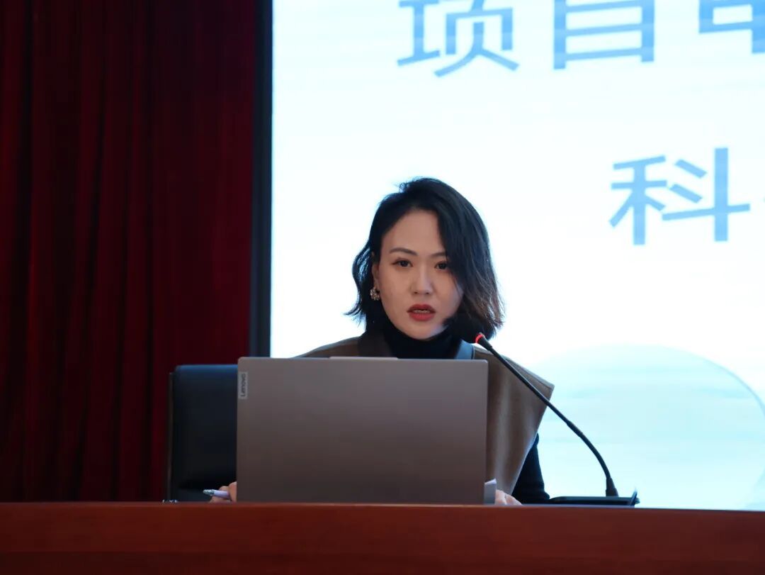 科研处处长关娇则围绕“项目申请全流程指南”与“科研成果认定及科研奖励政策”两大核心内容展开深度解读。在全流程指南部分,她从项目信息获取、申报条件初筛、选题论证、材料撰写、内部预审到系统提交、后续跟进等关键节点,进行了细致梳理,明确了各环节的时间要求、合规要点与注意事项。在政策解读环节,她结合学校最新修订的科研管理制度,详细阐释了论文、专利、成果转化等各类科研成果的认定标准,以及科研奖励的申报条件、评审流程与发放细则,让全校教师清晰知晓“成果如何认、奖励如何拿”。