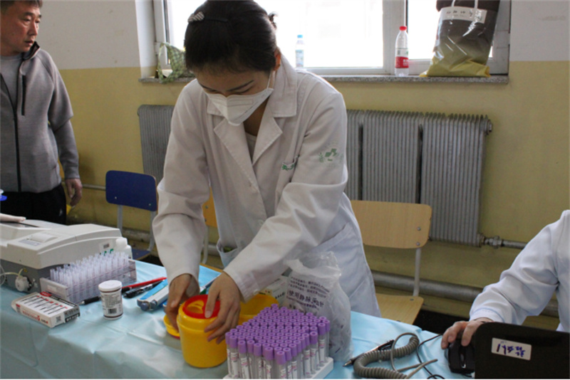 同学们在医务人员和校学生会工作人员的引导下,依次进行了信息登记、血液类型检验、静脉采血等环节。古代学者有云,“种树者必培其根,种德者必养其心。”同学们纷纷挽起袖管,坐在采血椅上献出“青春热血”,真正将奉献做到了内化于心、外化于行。