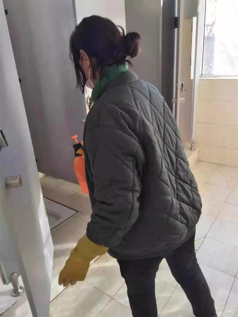 后勤工人在做好自身防护的前提下,利用符合防疫要求的药物喷剂,每天3次不留死角的喷洒,并做好消毒记录。