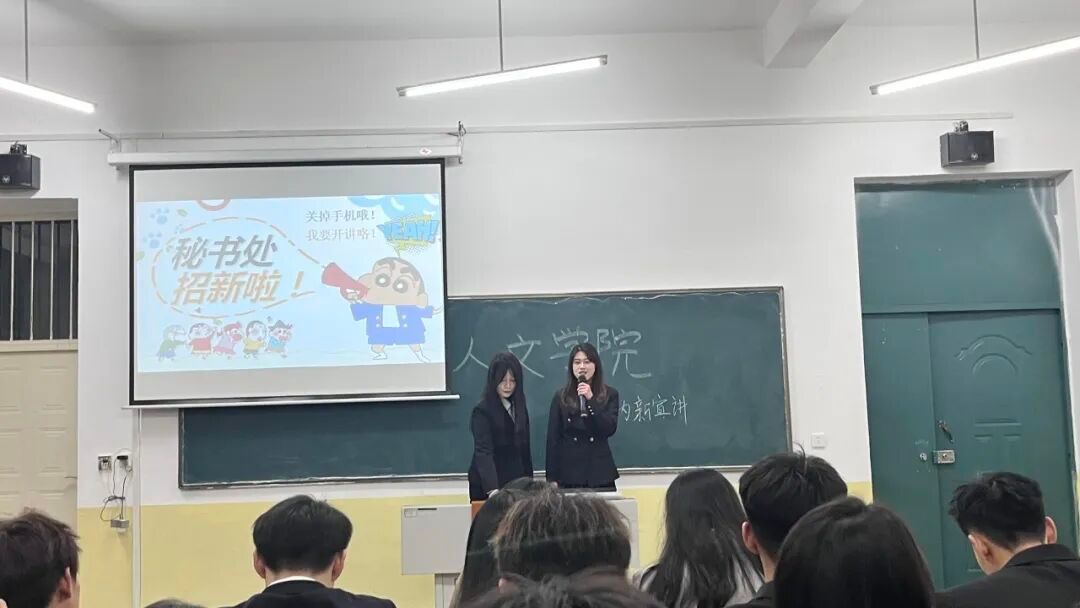 (通讯员 杨月)为助力2025级新生明确规划大学生涯的成长蓝图,进一步壮大人文学院学生会与分团委的人才阵容,打造实践与自我提升的精品平台,10月13日,人文学院分团委及学生会纳新宣讲会圆满举办。人文学院党支部书记、辅导员孙畅,辅导员杨月参会,为同学们鼓劲加油,学生会各部门负责人以及2025级全体新生共同见证了这一重要时刻。