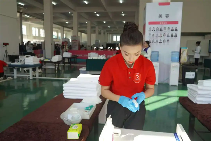 我校派出28名选手冲刺移动应用开发、飞机维修、电气装置、美容、汽车技术、数控车、数控铣、CAD机械设计、增材制造、机器人系统集成(双人赛)、花艺、平面设计技术、电工、普通车床、电子商务、航空服务(民航乘务员)、社会体育指导等17个赛项。派出27名裁判,执裁17个赛项。