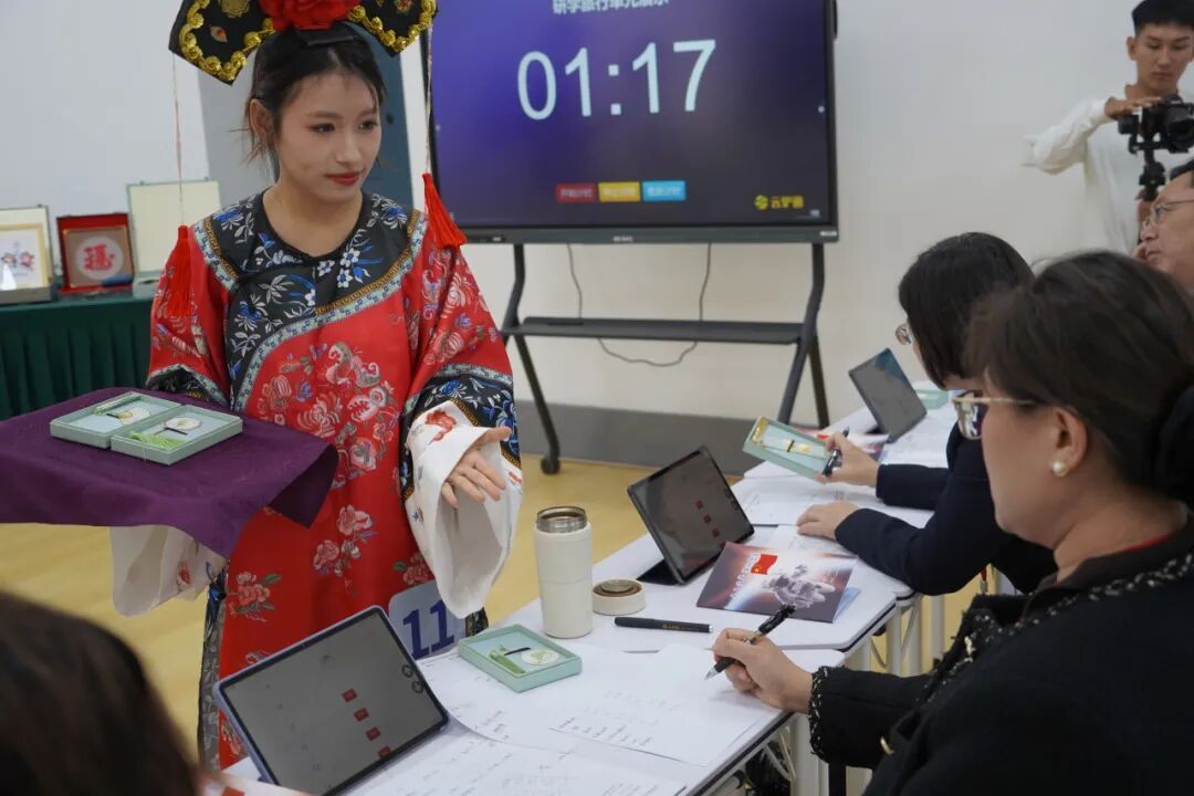 午后,模块三研学旅行单元模拟教学展示正式拉开帷幕,这也是本次东北赛区赛事的最后一个比拼环节。赛场被划分为多个独立展示区,每组选手需在有限时间内完成自选单元的中文模拟教学。职教组队伍围绕生活化研学主题,通过情景模拟、互动提问的方式,将相关领域知识生动呈现,展现出扎实的实践教学功底;本科组选手聚焦文化类研学方向,借助 PPT 与虚拟模型,清晰讲解课程设计逻辑与实施步骤,凸显出创新的教学设计思维;教师组选手则凭借丰富的教学经验,在课堂节奏把控、学生引导技巧上展现出高超水准,赢得评委频频点头认可。评委们围绕课程目标清晰度、教学方法创新性、语言表达流畅度等维度细致评分,不时就课程实施细节与选手深入交流,现场既充满竞技的紧张感,又洋溢着教学经验交流的浓厚氛围。截至 16 时 30 分,所有队伍的模块三展示全部完成,标志着本次东北赛区的竞赛环节正式收官。