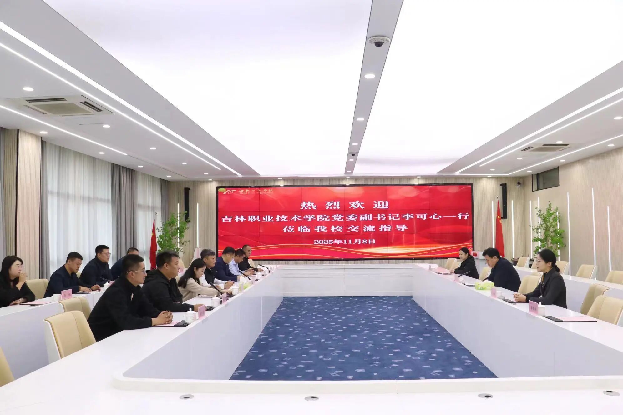 11 月 8 日,我校党委副书记李可心,纪委书记、副校长李贵河,党委委员、组织部部长段世娇,党委委员、马克思学院党支部书记王泽强及相关部门负责人,赴合肥理工学校开展党建交流活动,交流会由合肥理工学校党委委员、副校长阮姗姗主持。