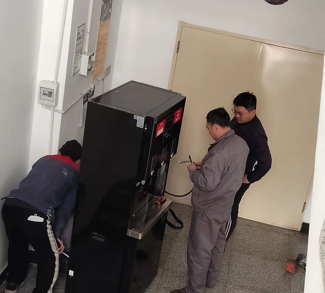 前期,后勤管理处结合学生公寓实际使用需求,针对原有老旧设备运行不稳定、故障率高等问题,严格筛选资质齐全、质量可靠的直饮饮水机,在各公寓1至6楼合理布设安装点位。施工过程中,工作人员高效完成设备拆装、管线铺设、调试检测等工作,严把安全关与质量关,确保所有新饮水机在开学前顺利投入使用。