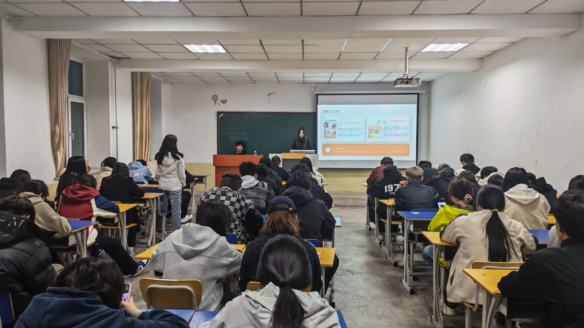 随后进入心灵初相遇心理知识科普环节,主持人围绕大学生常见情绪困扰、人际交往困惑、学业压力焦虑等焦点问题深入讲解,普及心理健康常识,帮助同学们科学理解心理、理性认识情绪,明确心理健康并非遥不可及,正视情绪、接纳情绪才是青春成长的必修课,引导大家树立科学健康的心理观念。在互动交流环节,同学们积极参与、真诚交流,勇敢表达内心烦恼与日常心事。在包容陪伴中感受集体温暖,学会换位思考、共情理解,懂得倾诉与陪伴都是治愈心灵的良药。