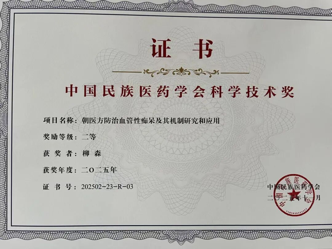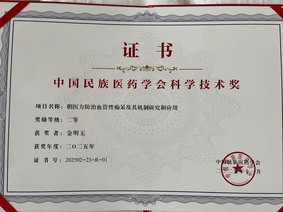 喜报丨我校荣获中国民族医药学会科技进步奖二等奖 朝医方为血管性痴呆防治提供新路径