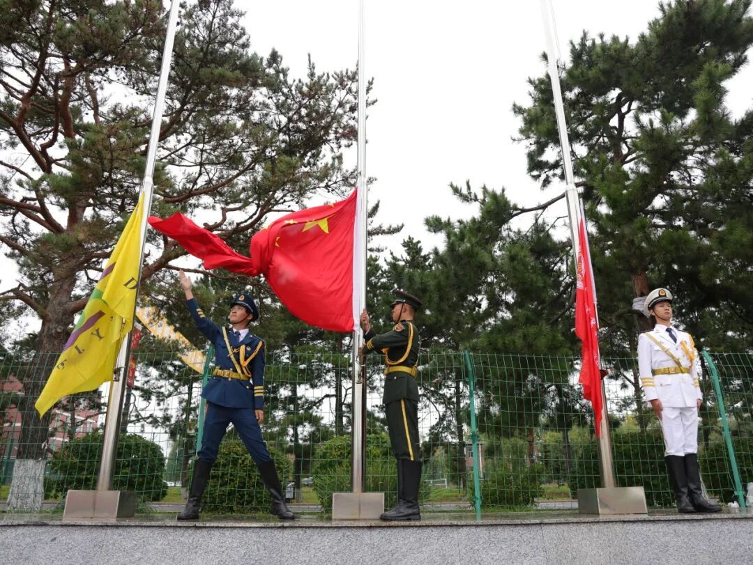 入场仪式结束后,国旗护卫队举行庄严的升国旗仪式,全体人员肃立,伴随着雄壮的《义勇军进行曲》,五星红旗冉冉升起,爱国情怀在每个人心中激荡。