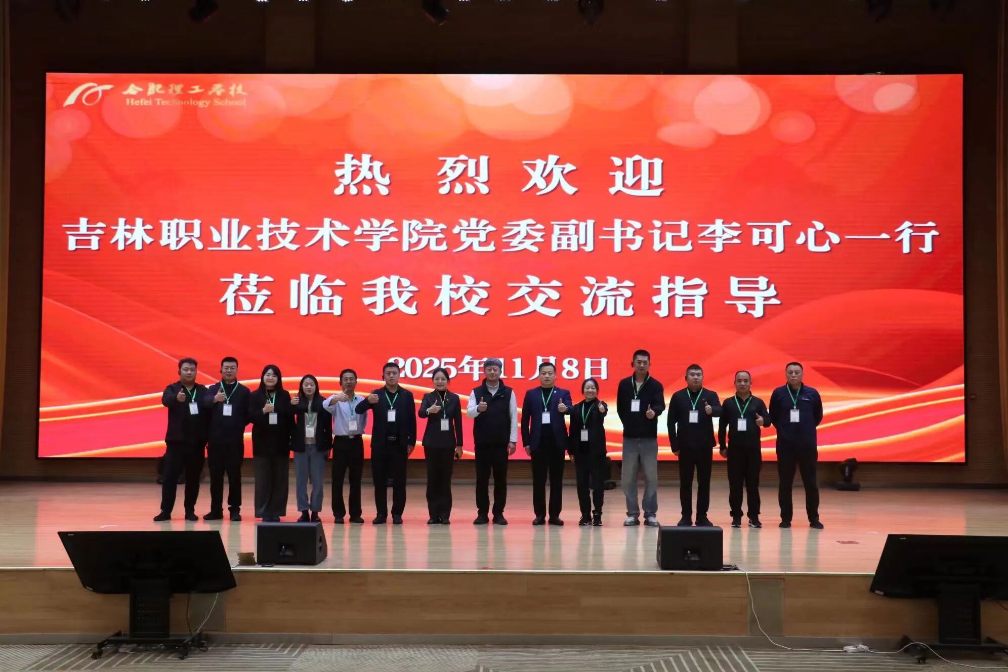 11 月 8 日,我校党委副书记李可心,纪委书记、副校长李贵河,党委委员、组织部部长段世娇,党委委员、马克思学院党支部书记王泽强及相关部门负责人,赴合肥理工学校开展党建交流活动,交流会由合肥理工学校党委委员、副校长阮姗姗主持。