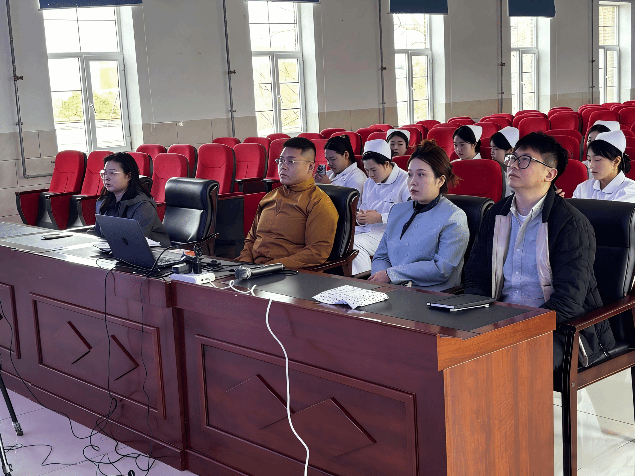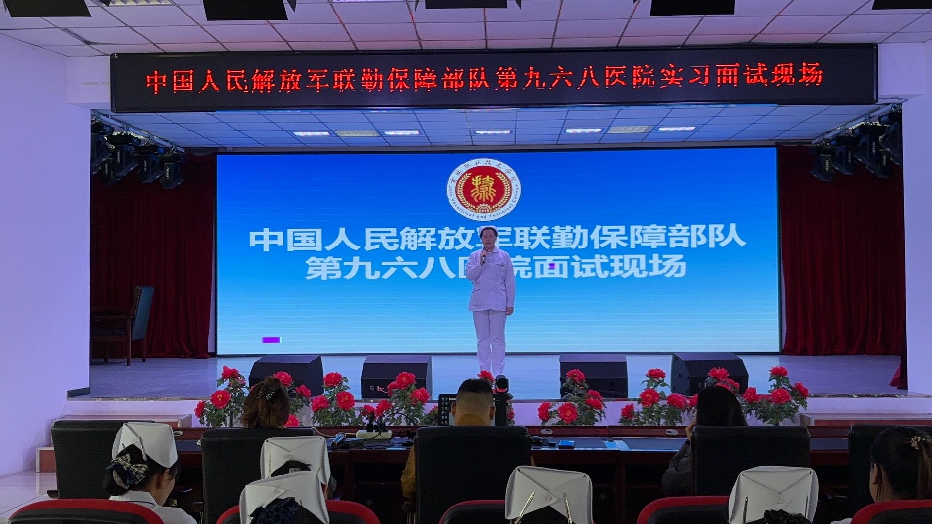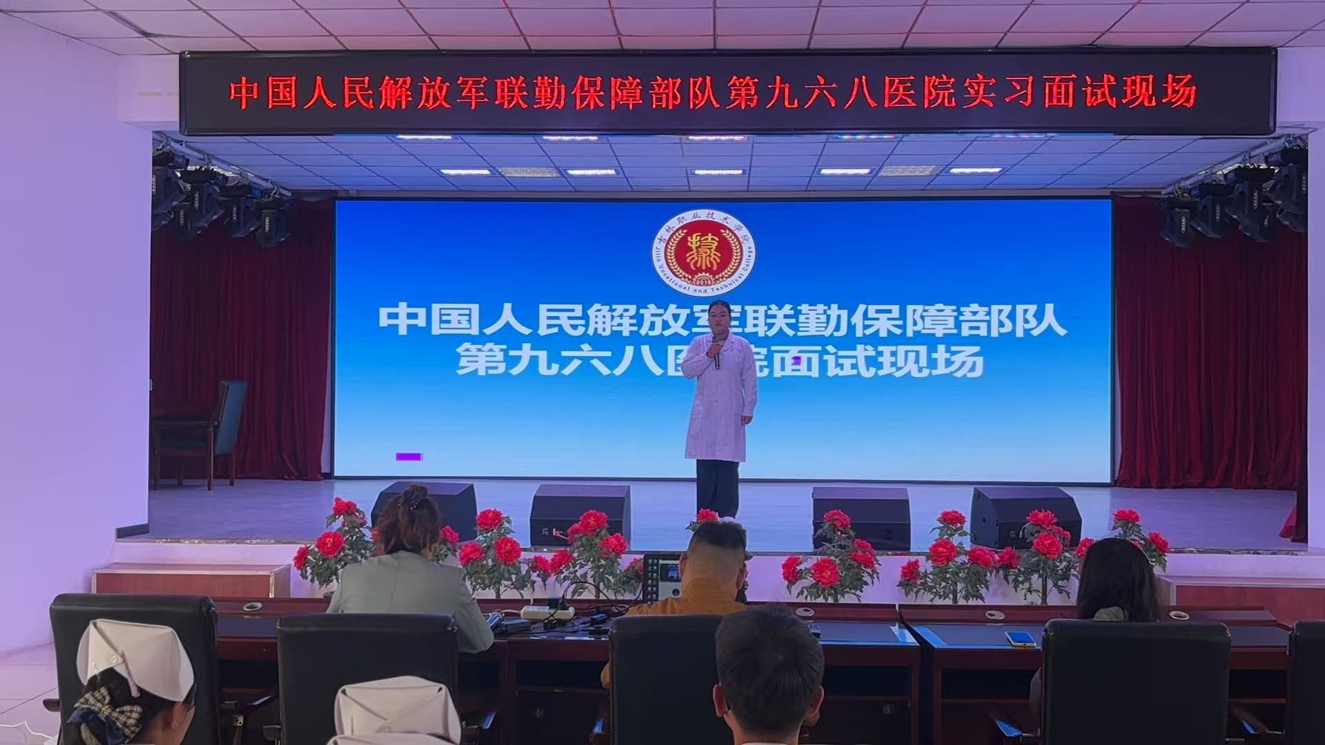 (通讯员 姜宇晗)为深化校企合作,拓宽康复、护理专业学子实习就业渠道,助力学生高质量就业,4月1日,医药学院在行政楼报告厅开展中国人民解放军联勤保障部队第九六八医院线上面试选拔工作。此次面试面向学院康复治疗技术、护理专业学生,医院护士长担任云端面试官,医药学院党支部书记李泓辉、学办副主任刘朋博,辅导员张郡玲、孔凡露全程出席,统筹协调各项事宜,保障面试有序推进。面试前期,医药学院精心筹备,全面调试面试场地、网络设备与线上流程,细致讲解面试注意事项,帮助学生调整心态、做好准备,营造规范公平的面试环境。