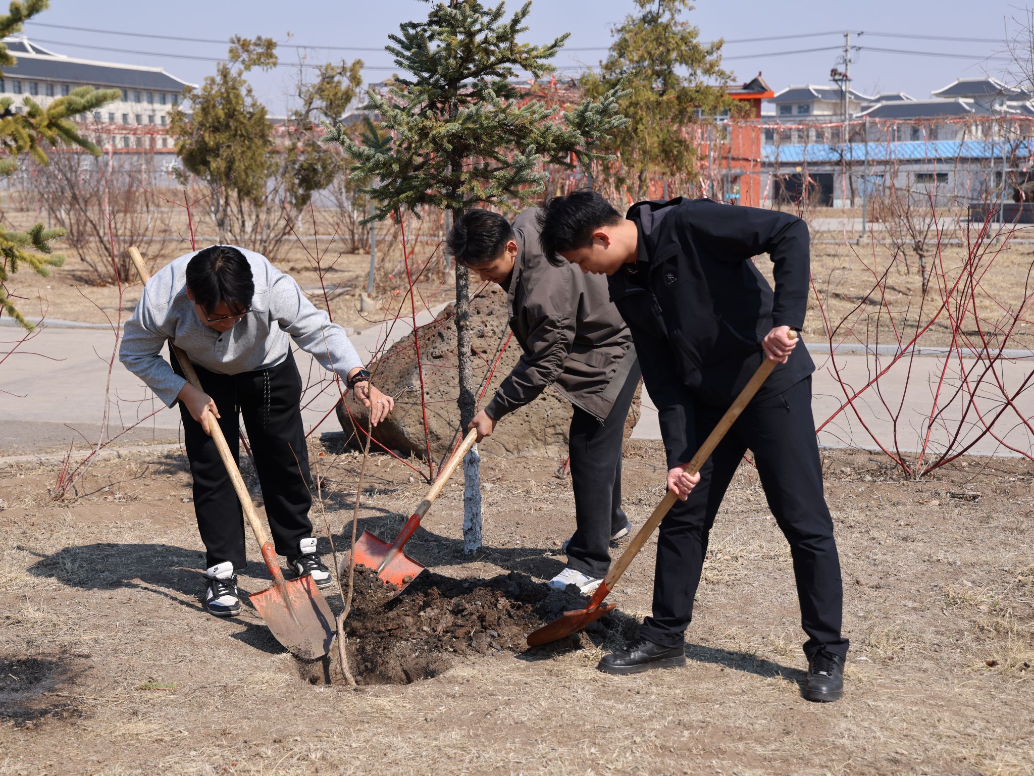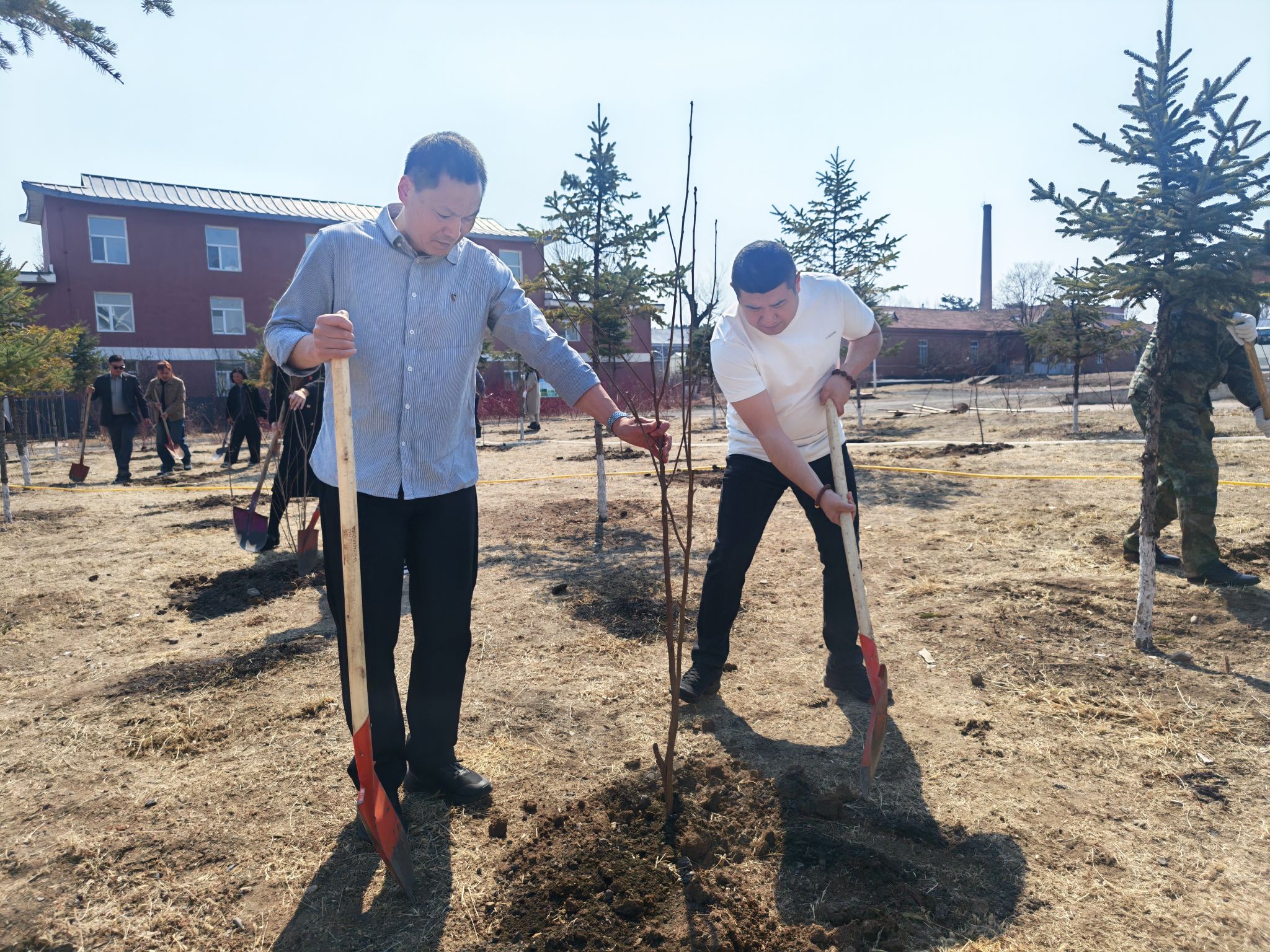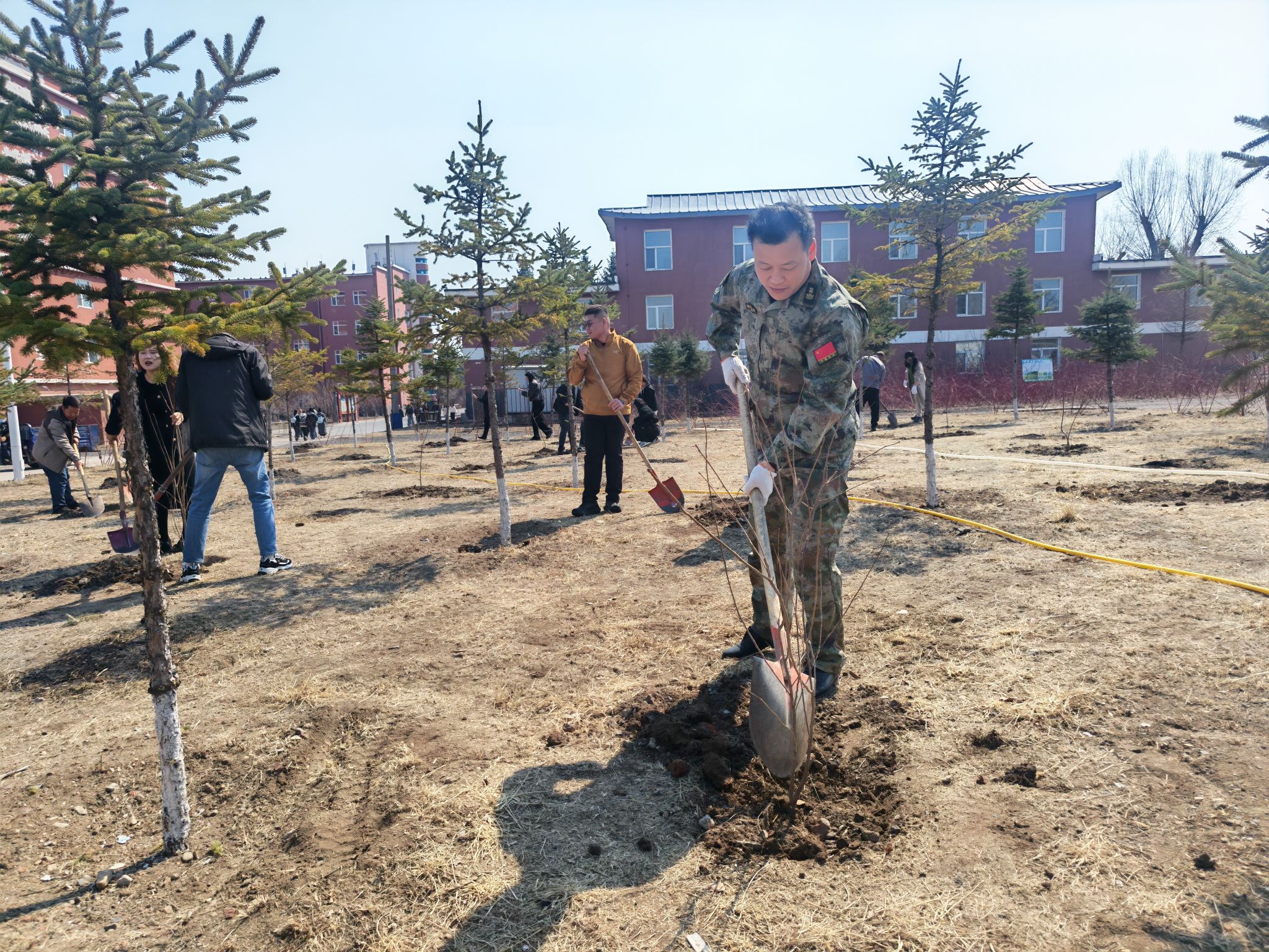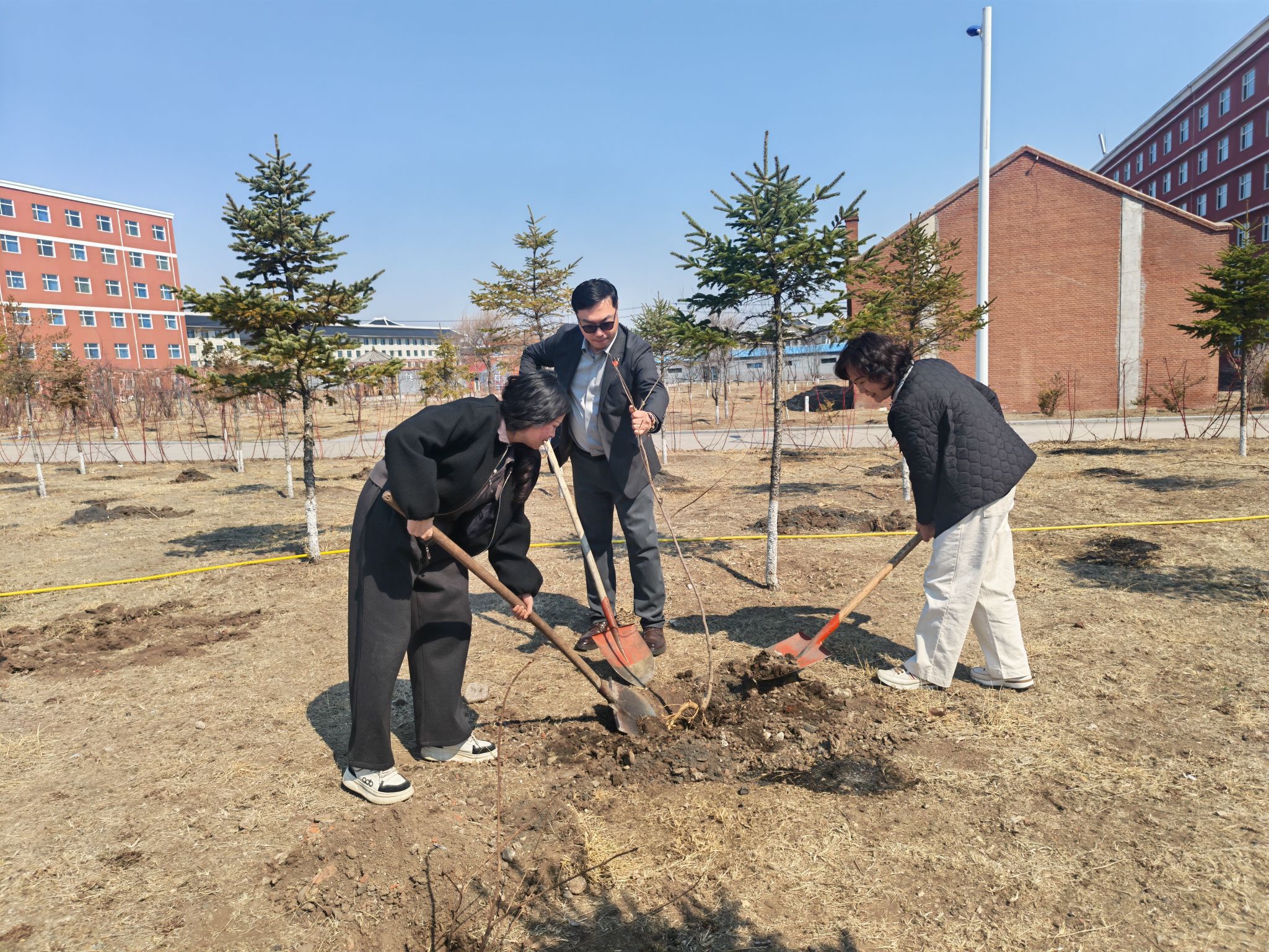 为深入践行绿色发展理念,积极响应国家生态文明建设的号召,进一步美化校园整体环境与景观布局,增强全体教职员工的生态环保意识与责任感,用实际行动为校园增添绿色生机与活力,我校经过周密策划与精心组织,动员全体教职员工开展了主题鲜明、内容充实的校园植树活动。