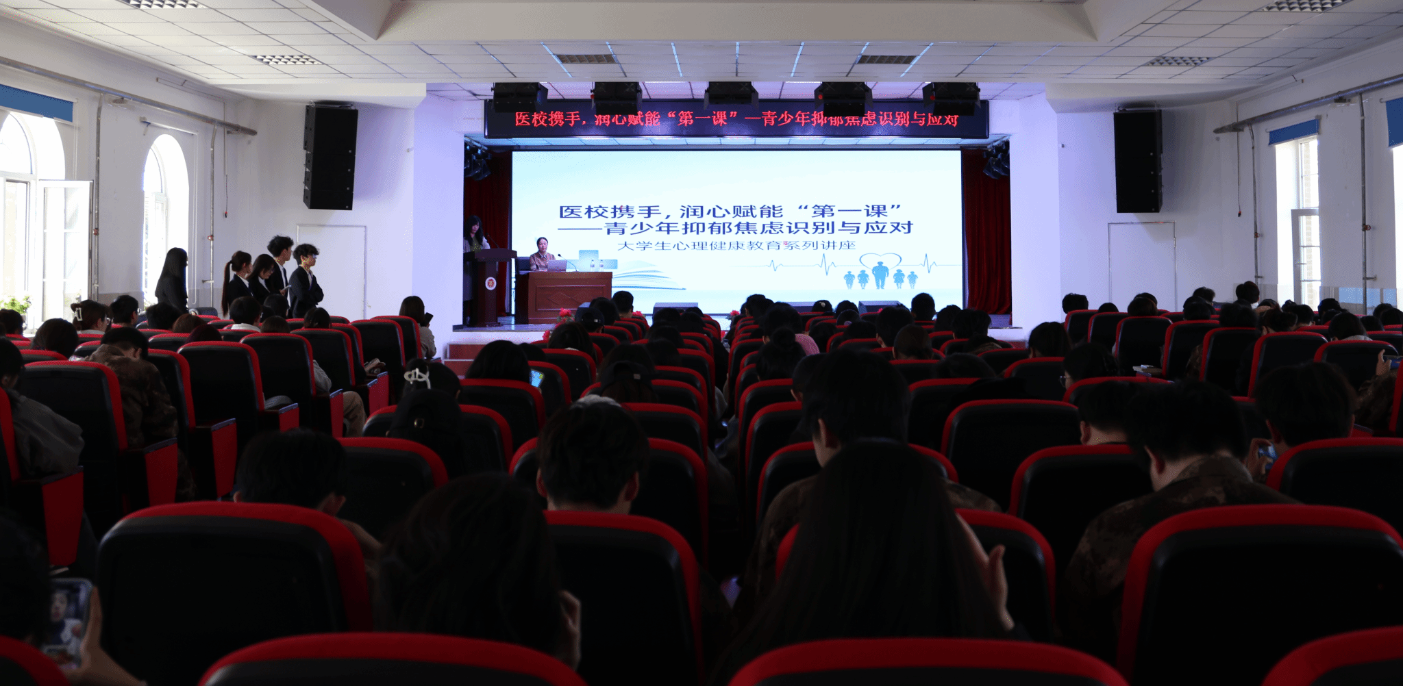 4月10日下午,我校心理健康教育中心在学术报告厅举办“医校携手,润心赋能第一课”青少年抑郁焦虑识别与应对专题讲座,推进2026年“开学第一课”系列教育活动落地见效,进一步筑牢学生心理健康防线。讲座特邀延边脑科医院心理科主任郝林主讲,200余名学生到场参与。