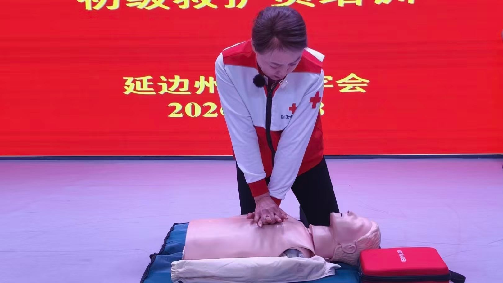 学院高度重视本次培训,前期周密部署、统筹推进。学院办公室协调场地与物资保障,学生工作办公室落实学员组织与纪律教育,红十字志愿服务队负责签到引导与秩序维护,安全工作小组排查隐患、制定预案。延边州红十字会全程提供技术支持,配备心肺复苏模拟人、模拟 AED、绷带、三角巾、急救箱等专业器材,为培训高质量开展提供坚实保障。