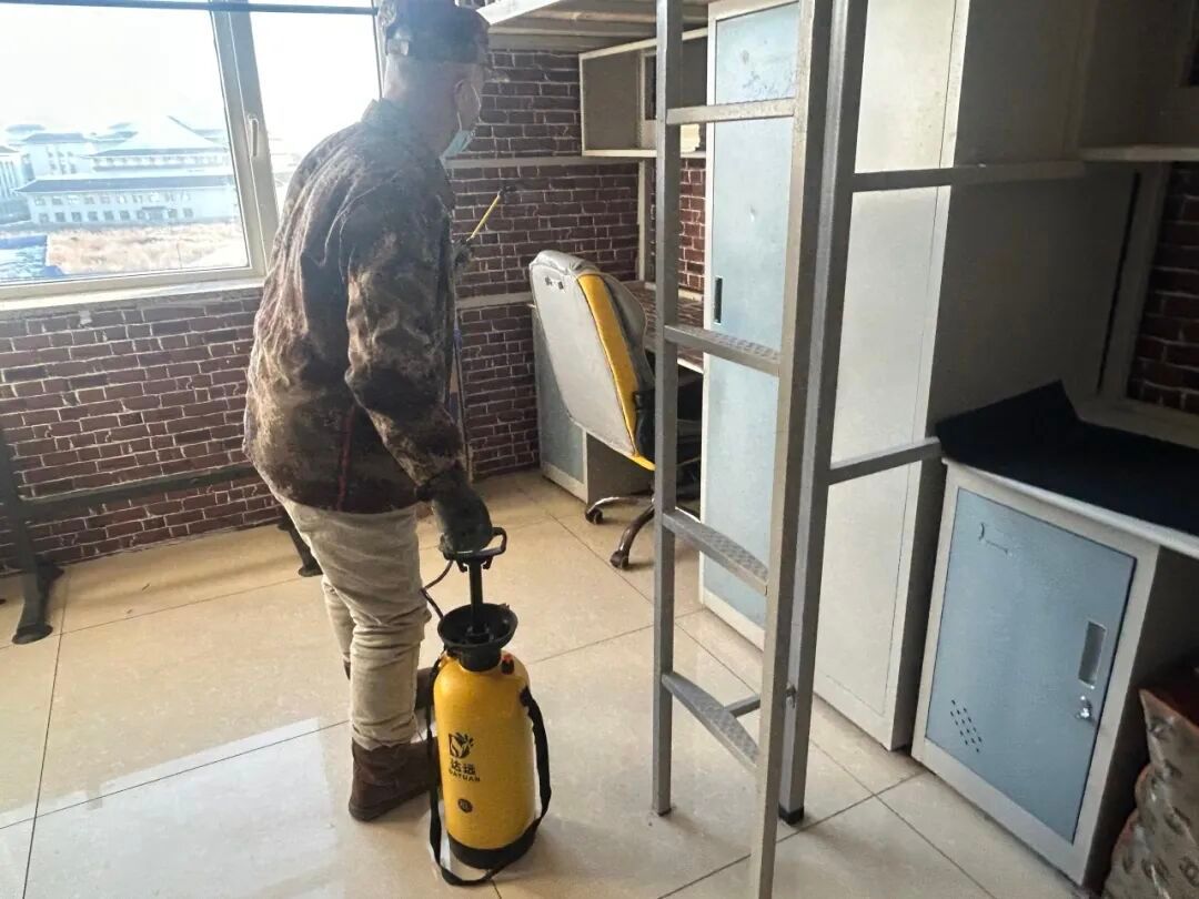 (通讯员万博)为切实筑牢校园卫生安全防线,保障广大师生返校后拥有健康整洁的住宿环境,后勤管理处精心部署,于假期期间组织后勤工作人员,对全校学生公寓开展有害虫类专项消杀整治行动。