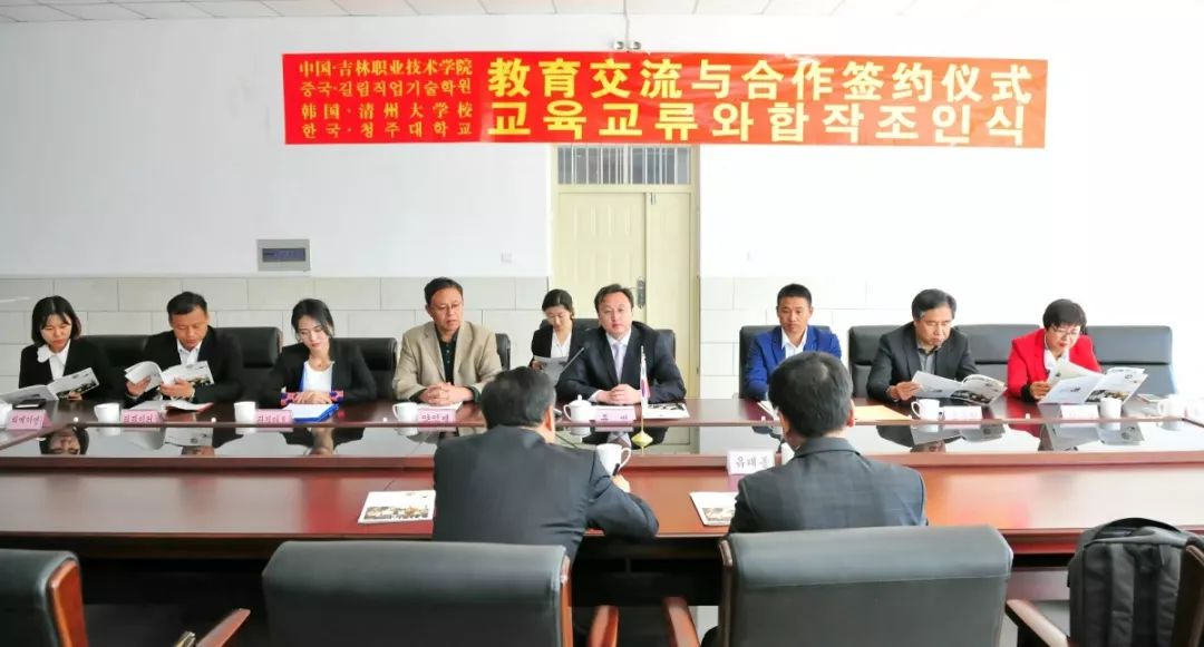 2018年10月8日,韩国清州大学代表团一行3人来到吉林职业技术学院,举行合作办学座谈会暨合作办学签约仪式,下一步两校将采取“3+2”合作模式,即学生在吉林职业技术学院毕业后,到韩国清州大学深造两年,这标志着我学院的国际合作办学工作又结硕果。清州大学历史悠久,于1947年6月6日开校,目前设有33个学部、61个专业,学生总数达13,000余名,在韩国200多所大学中排在第26位。
