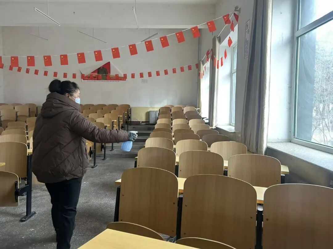 后勤人员坚持“不留盲区、不漏一角”,从教学区域到生活空间,从公共设施到高频触点,全方位净化校园环境,切实消除卫生安全隐患,为新学期传染病防控工作打下坚实基础。