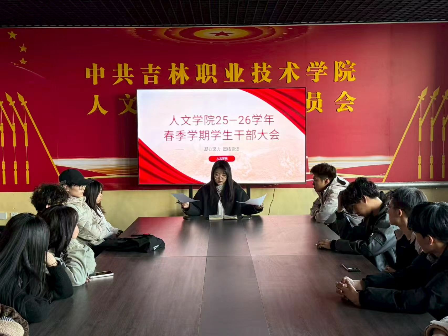 (通讯员 朱玲娇)为进一步加强学生干部队伍建设,明确新学期工作目标与责任,凝聚奋进力量,人文学院于3月30日开展了25-26学年春季学期学生干部大会,会议由学院党支部书记、辅导员孙畅主持,全体人文学院学生干部参加。