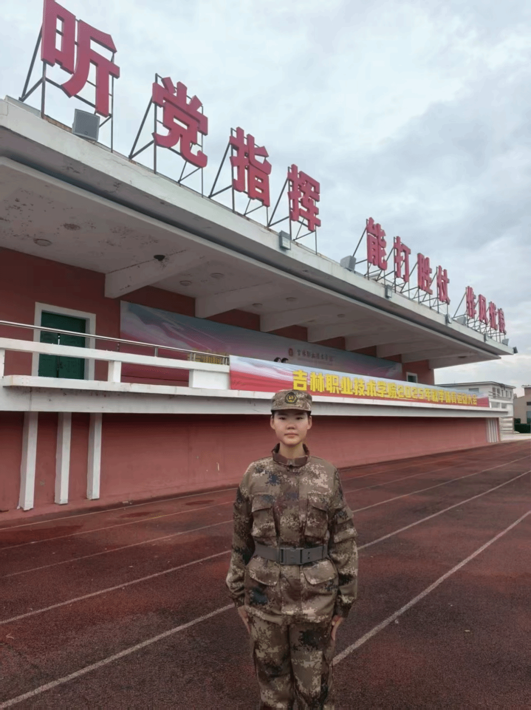 我校国旗护卫队空军仪仗队成员姚学丽,在 2025 级新生军训汇报表演暨开学典礼上获评 “国旗护卫队训练标兵”。这位 2007 年 3 月出生的共青团员,自 2025 年 9 月入队以来,以坚定的政治信念、练就过硬本领和顽强的担当精神,成为全体大一新生的学习榜样,用青春汗水诠释了国旗护卫队成员的初心与使命。