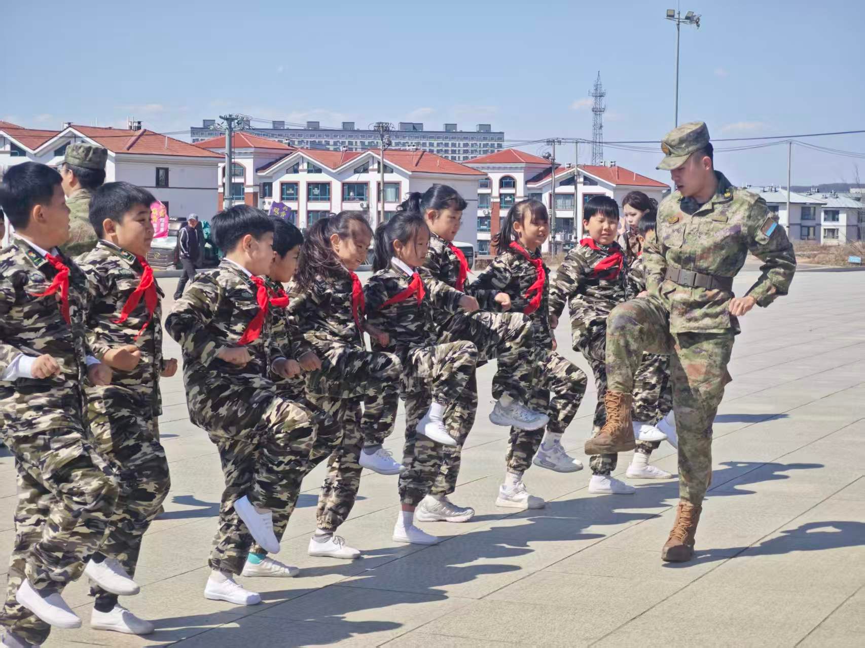 除了深刻的红色课堂,我校尹成龙老师及大学生预备连同学还为小学生们带来了军体拳培训。训练场上,教官们动作标准、示范规范,耐心指导每一个招式细节。孩子们精神抖擞、认真练习,一招一式间尽显少年意气,在挥洒汗水的过程中锤炼坚韧意志,体会军人风采,将纪律意识与拼搏精神深深植入心中。