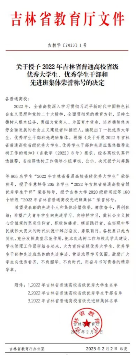 - 喜报 | 我校在2022年吉林省普通高校省级优秀大学生、优秀班干部和先进班集体评选中荣获佳绩